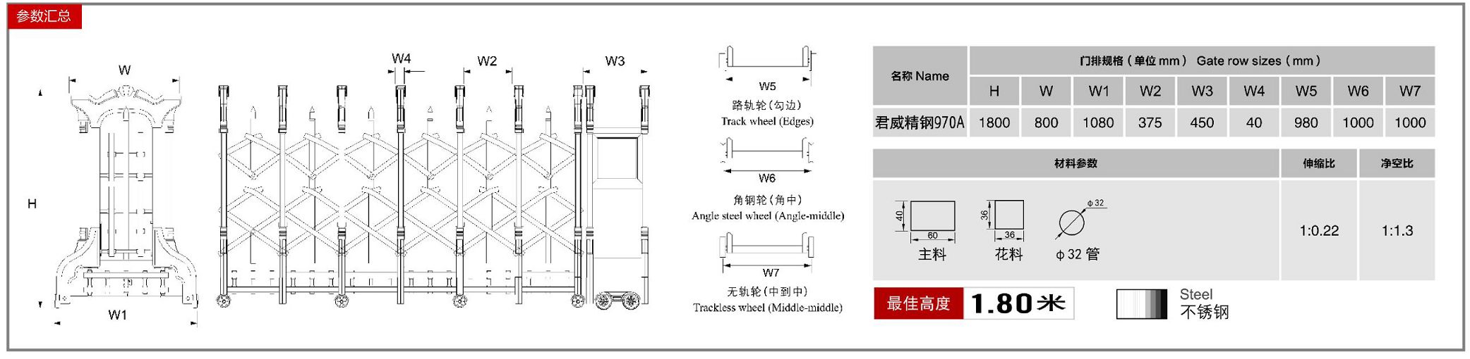 3.選材用料,彎頭和彎腳全部采用大型壓鑄鋁部件,堅(jiān)固耐用,能在門體上站立,不影響行走的全鋁閘門。