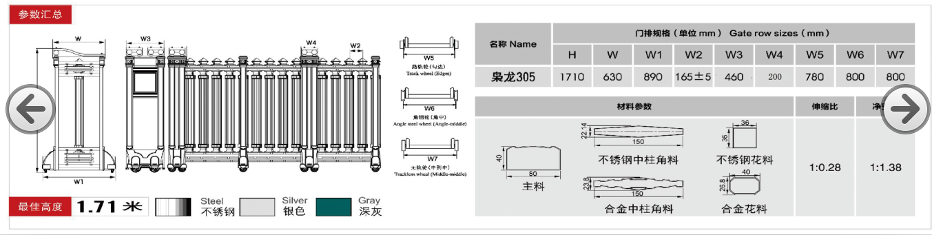 4.選材用料:①本產(chǎn)品不銹鋼系列全部采用高銅不銹鋼型材,品質(zhì)優(yōu)良。②本產(chǎn)品鋁合金系列全部采用高強度不銹鋼,品質(zhì)優(yōu)良。③主料采用8公分寬立柱,粗狂大氣。④內(nèi)置8k不銹鋼屏風(fēng),間距小于5公分,創(chuàng)行業(yè)之最小間距,本產(chǎn)品路合金。
